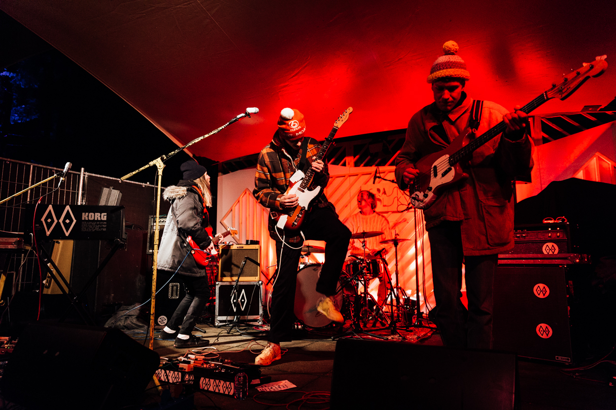 Next up: de band die in aanloop naar zijn optreden onmogelijk te missen was. Figgie was: de stickers sierden menig jas en gitaarkoffer, de posters prijkten uren eerder al op de ramen van Annex A en overal waar je liep leek ook frontman Paul Scheenstra op te duiken, met zijn niet te missen Piet Paulusma-muts. Een guerrillacampagne voert de band als geen ander, maar staat Figgie op het podium vandaag ook zijn mannetje? Ja, is het korte antwoord. Het lange antwoord is dat we hier met een van de spannendste en meest verfrissende acts te maken hebben die Nederland anno 2018 kent. Wat Figgie doet is nieuw: dromerige, soms jagende shoegaze met loodrecht daarop de eyecatcher van de band, de hoekige Nederlandstalige teksten. Figgie toont zich vanmiddag de definitie van meeslepend, muzikaal en performance-wise. Scheenstra maant het publiek tot beweging en zoekt op rustigere momenten indringend oogcontact. Als de band a capella het laatste refrein van Zwem zingt en daarbij de instrumenten aan de kant legt, ligt de voltallige Annex A al aan zijn voeten. (RvD)