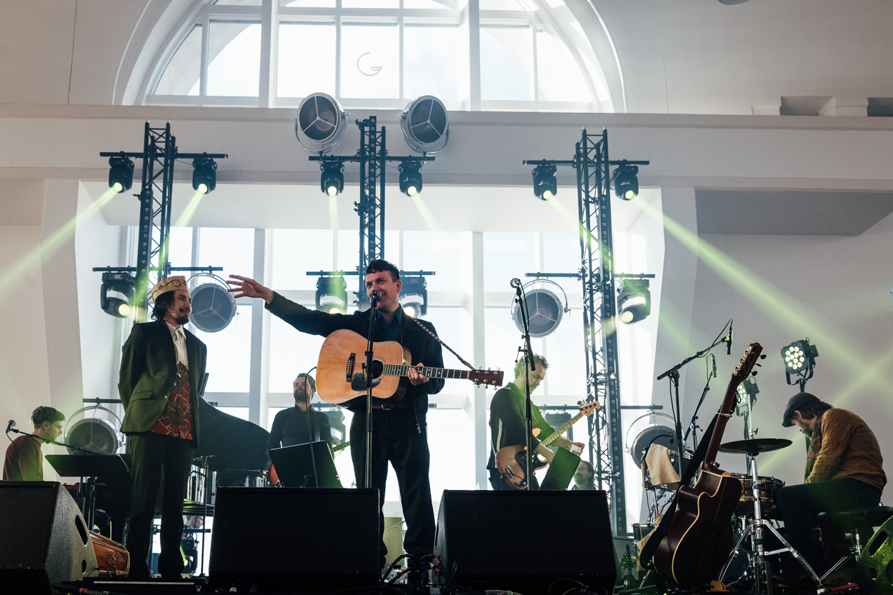 Het openingssalvo op dag twee is voor Hallo Bandoeng, het gelegenheidsproject rondom Bewilder dat de honderdjarige verjaardag van Radio Kootwijk viert met een ode aan Indonesië. Daar staat sinds 1918 op Java de evenknie van het monumentale zendgebouw, waardoor decennialang het contact met de kolonie werd vergemakkelijkt. Het project, dat ook enkele gastmuzikanten van Indische afkomst kent, ging pas enkele dagen eerder van start en dus is ieder resultaat bewonderenswaardig te noemen. Zoals gezegd staat vooral Bewilder, en daarmee vooral Maurits Westerik (ook Indische roots!), in het middelpunt, waarbij de eilandmuziek van de band dit keer op Java in plaats van Vlieland geënt is. Het resultaat is eclectisch te noemen, blijft soms dichtbij de band met enkel de toevoeging van Indische percussie, maar klinkt net zo vaak vreemd en exotisch. Een door Alex Siegers voorgedragen (en poëtisch nogal mager) gedicht genaamd Mijn Indonesië behoort tot de minder sterke momenten van de show, waarin de haast van het maakproces iets te goed hoorbaar is. Des te indrukwekkender is de experimentele en dynamische rework van de traditionele Bong-Ra, dat de meest meeslepende kant van Westerik toont. Gefragmenteerd is het allemaal wel een beetje met zoveel verschillende ideeën in krap een uur, maar hoogst sympathiek en creatief is Hallo Bandoeng zeker. Wij hopen op een vervolg. (RvD)