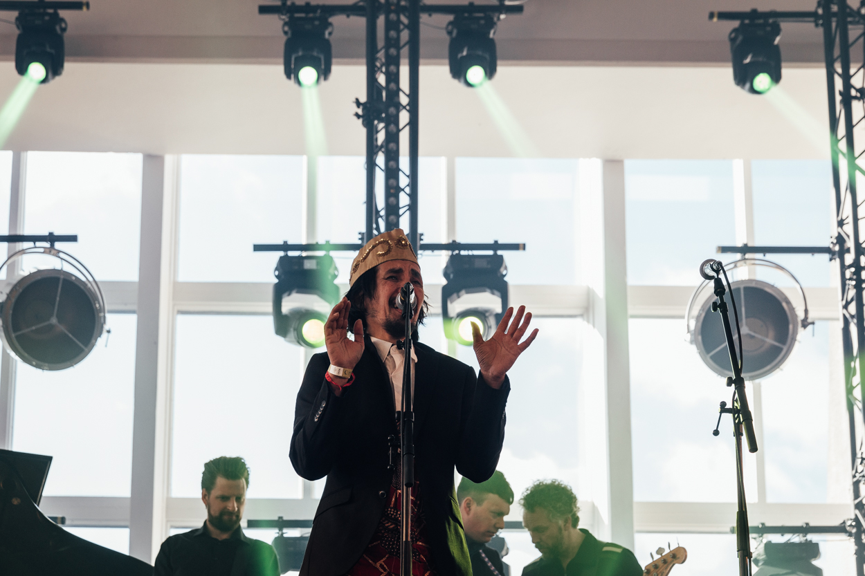 Terwijl de zon langzaam achter de gigantische ruiten van de Lange Golf kruipt, zingt de Amsterdamse schattebout Pitou ons toe. Haar eerste EP was twee jaar terug al een voorzichtige belofte voor een doorbraak, maar met haar nieuwe nummers en haar zeer geslaagde optreden op Noorderslag konden we in het blokkenschema met geen mogelijkheid om haar heen. Ze is net uit een dagenlang ziektebed gekropen en kucht haar nummers aan elkaar, maar ondanks dat haar zang naar eigen zeggen ‘iets meer Tom Waits is dan ik wilde’, zingt ze de sterren aan de hemel. De lucht die boven de Veluwe achter haar prijkt, kleurt mee met het optreden. Haar troosteloze emoties die ze in de zaal injecteert, reflecteert zich in de hemel en kruipt richting de nacht. Na haar optreden mogen we ons verzamelen bij onze beste vriendin van het afgelopen uur voor haar 37 lolly’s en uitnodigingen voor haar EP-release in Bitterzoet: we kunnen nauwelijks wachten. (MZ)